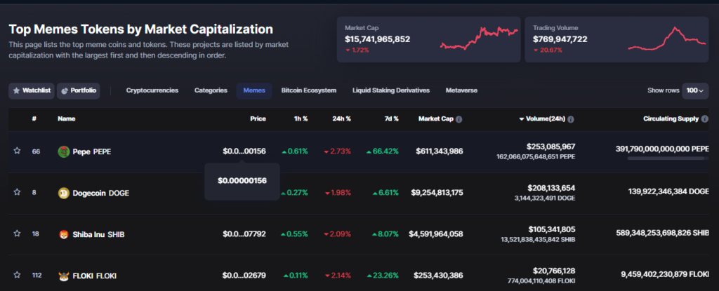 However, it fell behind Pepe in terms of trading volume. Similarly, Shiba Inu, another meme-inspired cryptocurrency, trailed behind Pepe with a 24-hour trading volume of $100 million and a market cap of $4.6 billion.